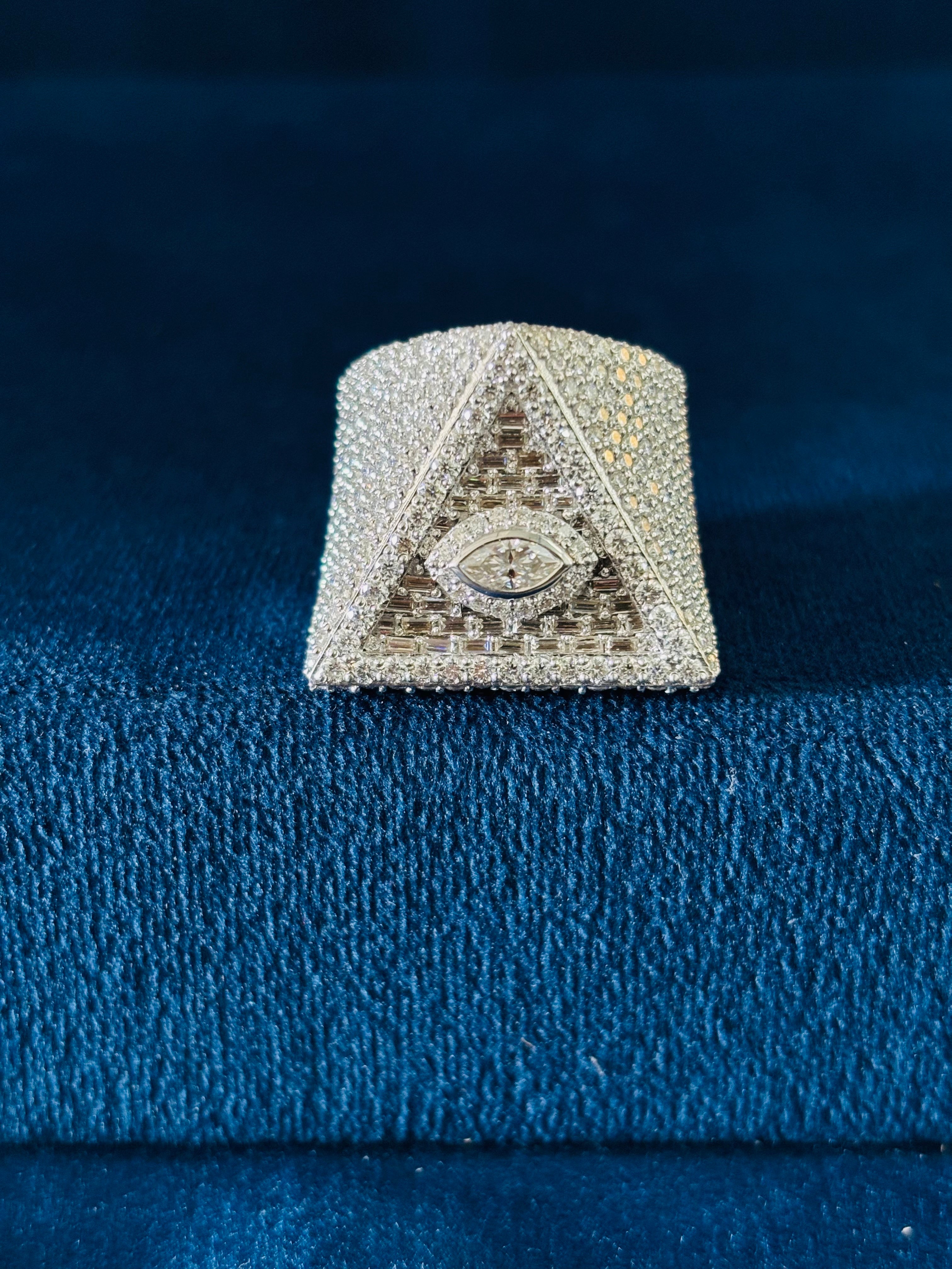A moissanite chronograph watch includes sub-dials, stopwatch functionality, and bold bezels — all with VVS stone coverage. These pieces operate as functional timekeepers, not just statement jewelry.