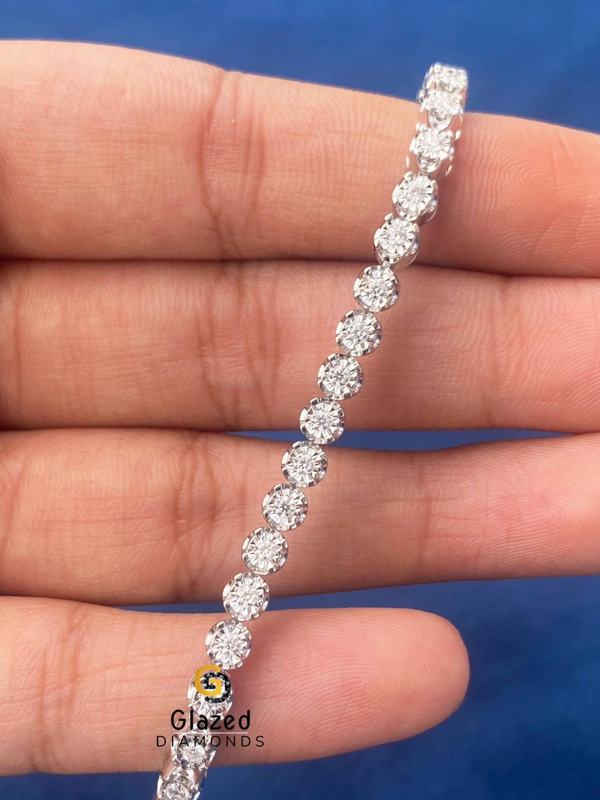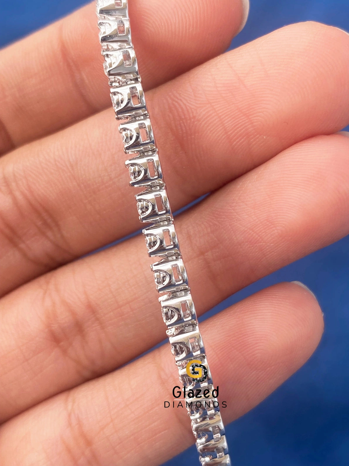 3MM Round Moissanite Bezel Set Tennis Link Bracelet 925 Silver
