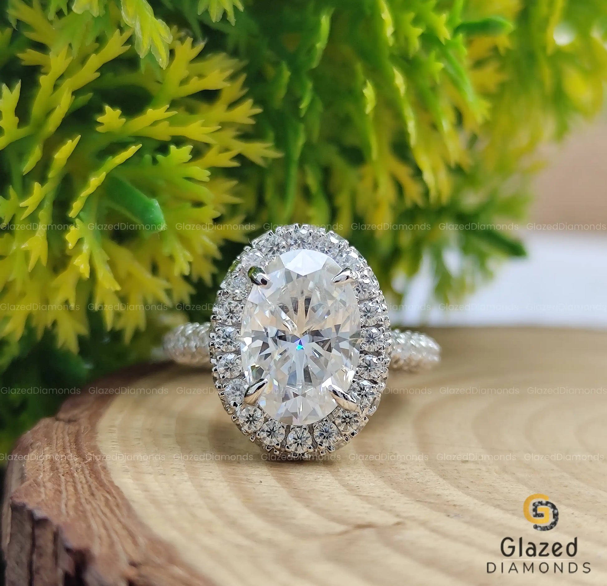 4.5CT Oval Cut Moissanite Halo Vintage Engagement Ring