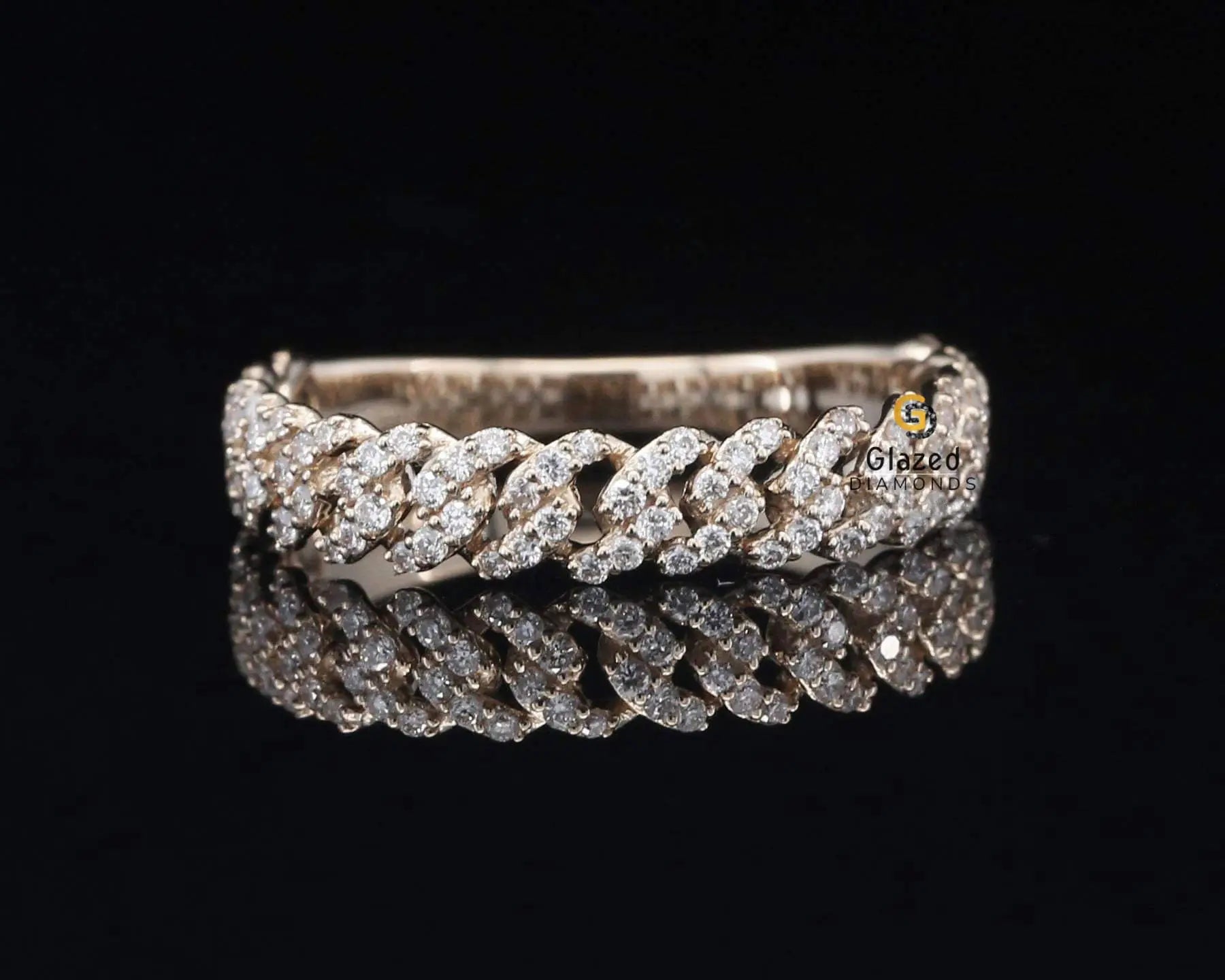 4MM Unique Moissanite Iced Cuban Link Hip Hop Band Ring