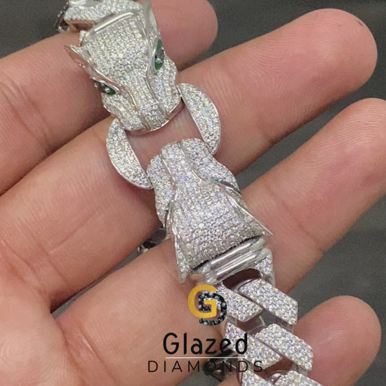 925 Sterling Silver Iced Diamond Hip Hop Dual Leopard Head Bracelet