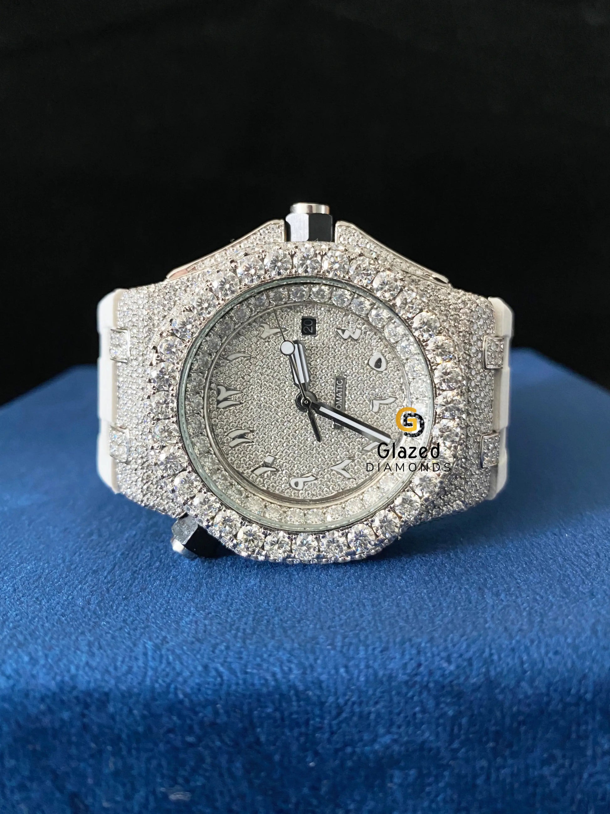 Bust Down Silicone White Strap VVS Moissanite Watch Arabic Face Dial