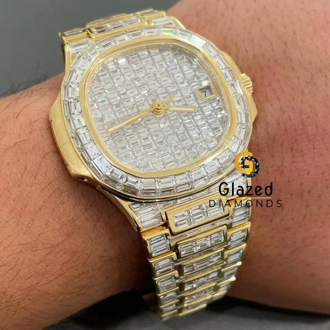 Custom Fully Icey Baguette Moissanite Diamond Watch