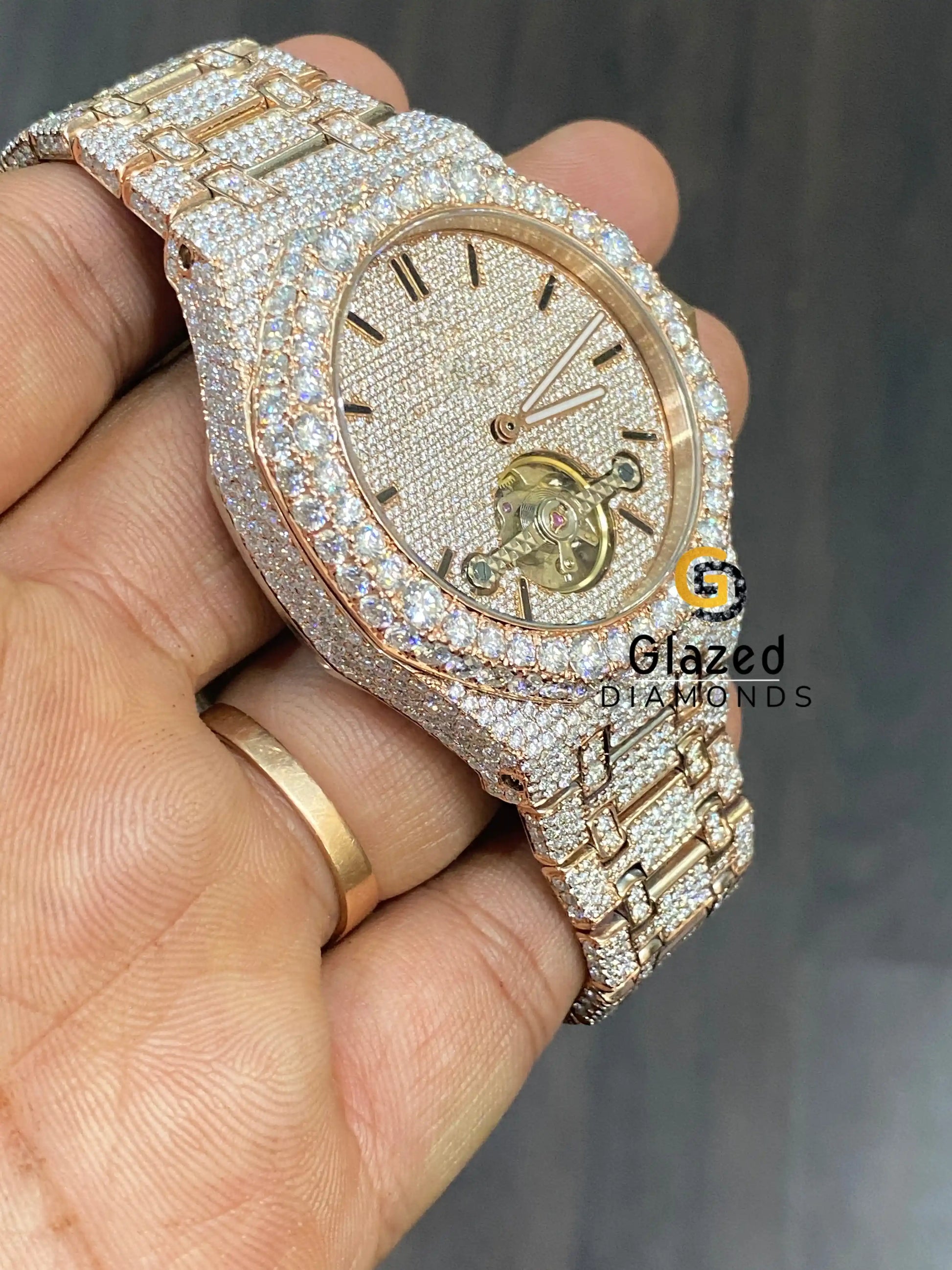 Presenting the Fully Bust Down Diamond Studded Moissanite Watch with Watch Box, Bag & Guidance.