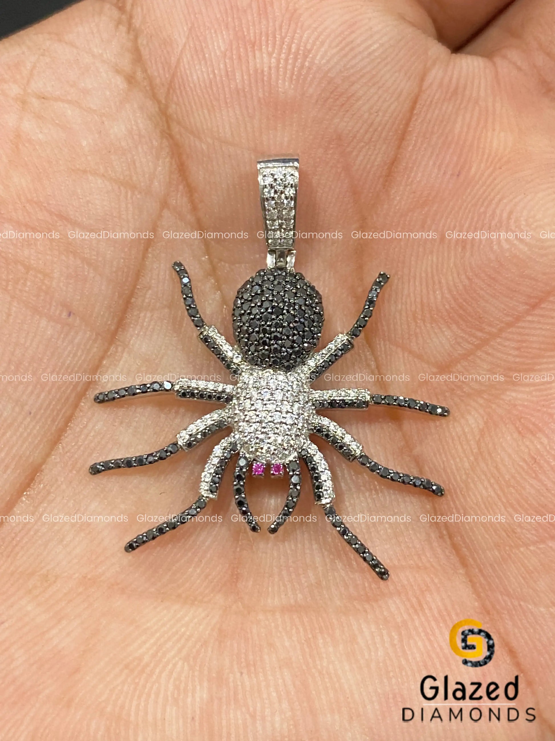 Iced Out Black & White Moissanite Diamond Spider Pendant in 925 Silver