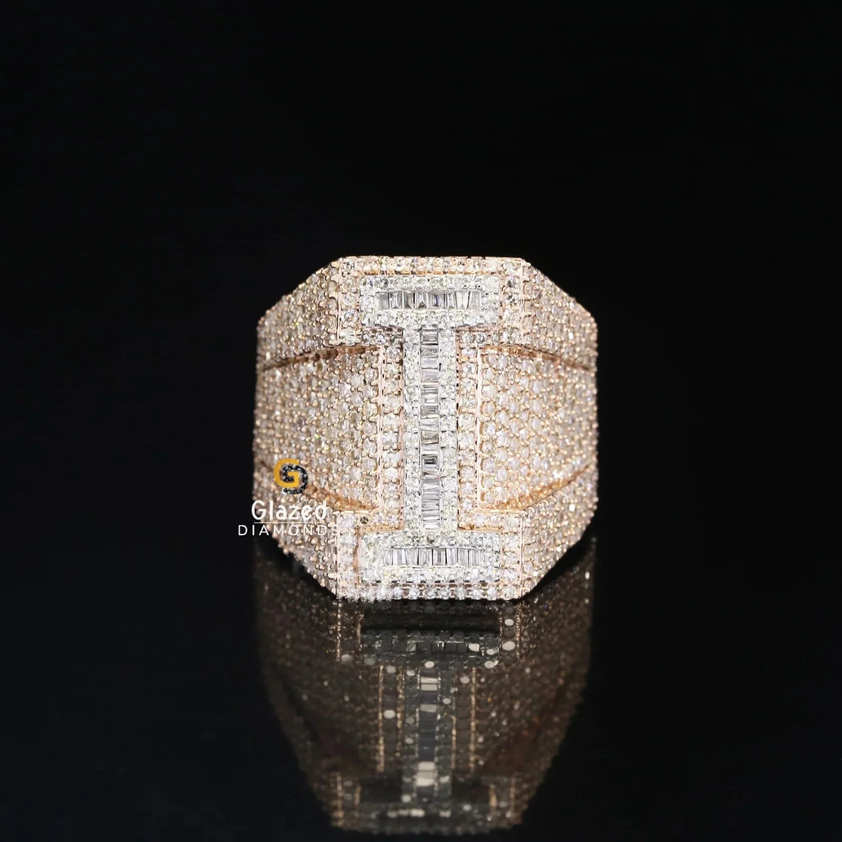 Iced Out Custom Baguette and Round Moissanite Initial Letter I Ring