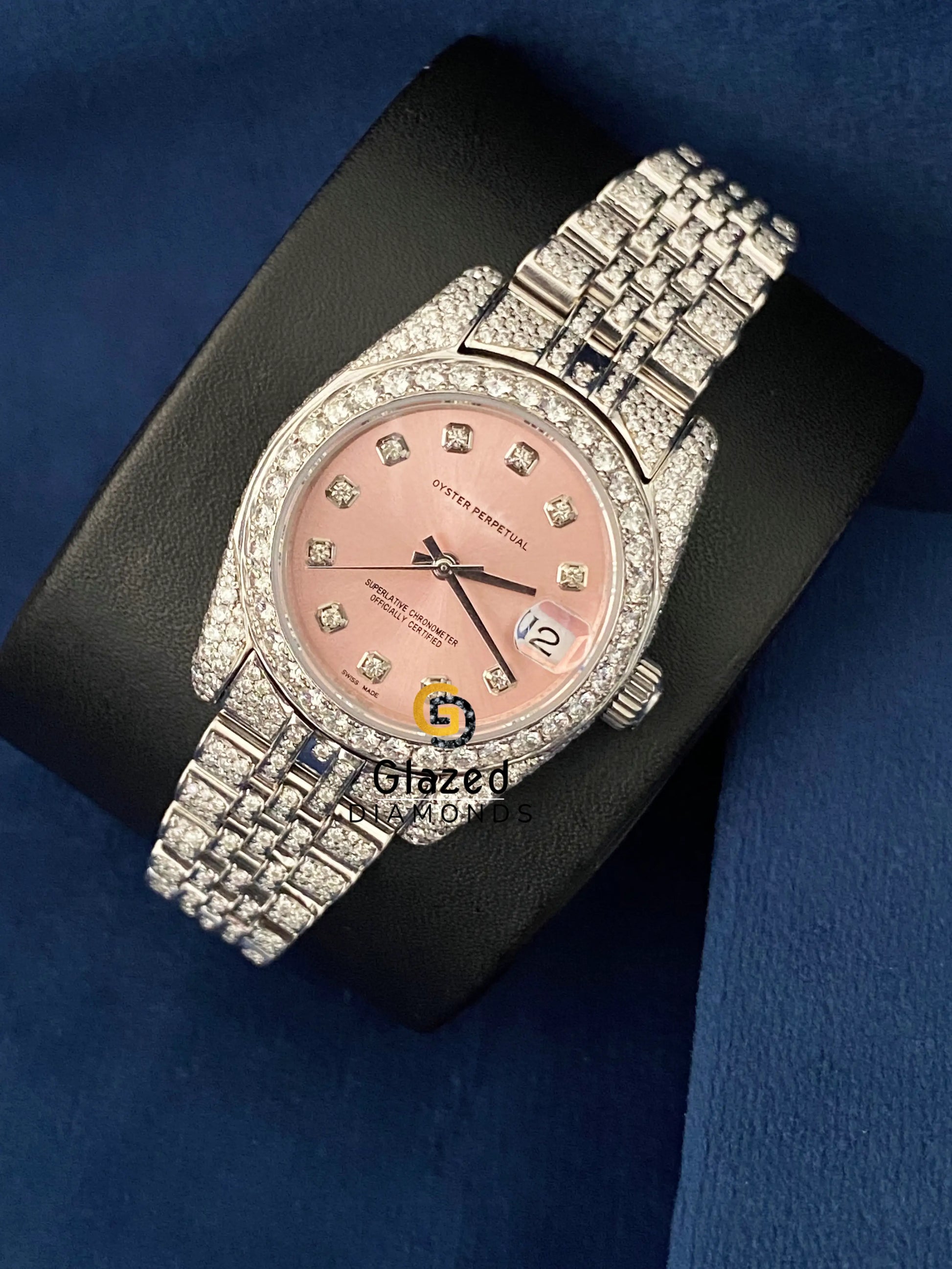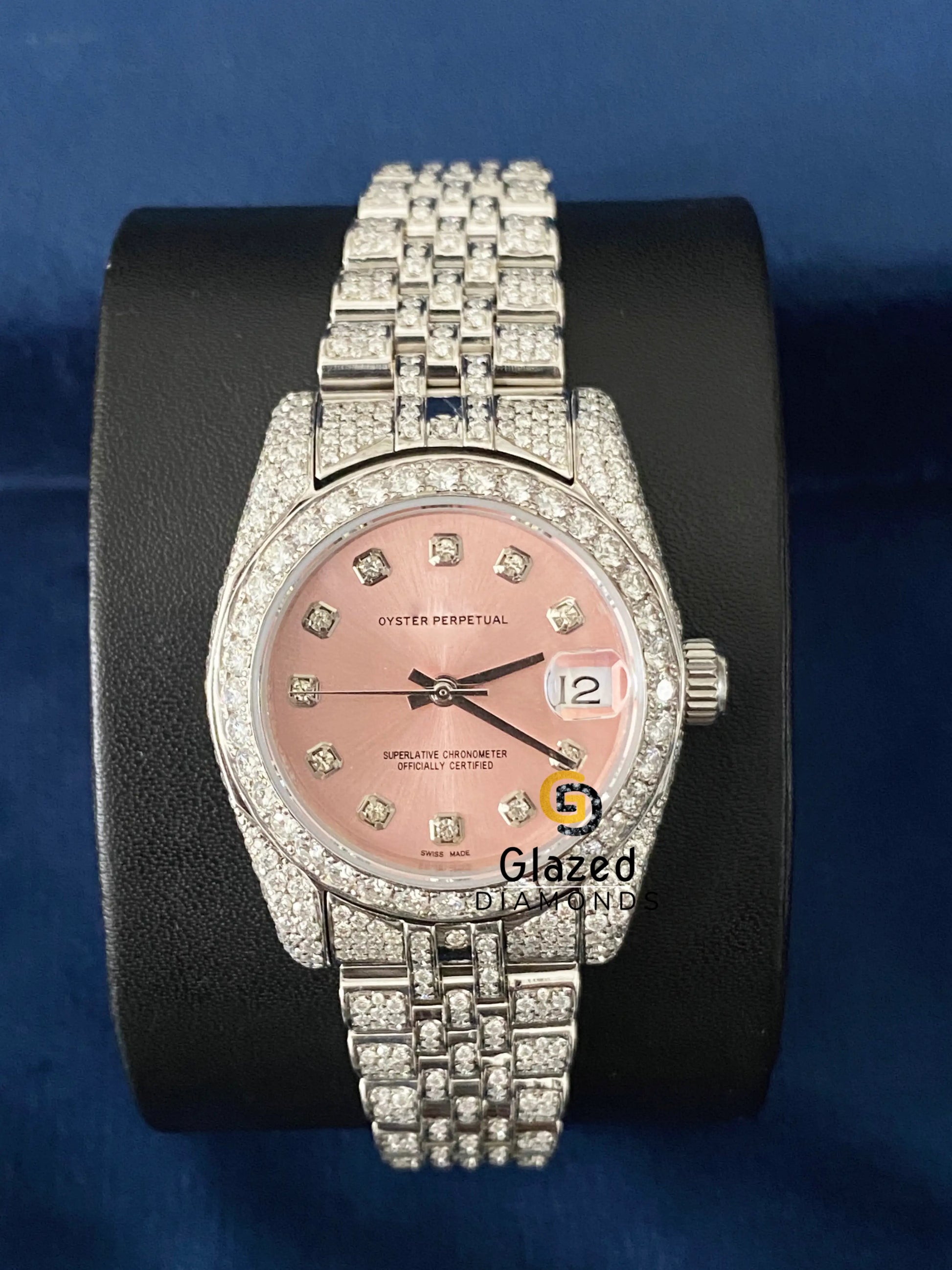Pink Dial Fully Iced Out Moissanite Diamond Studded Watch