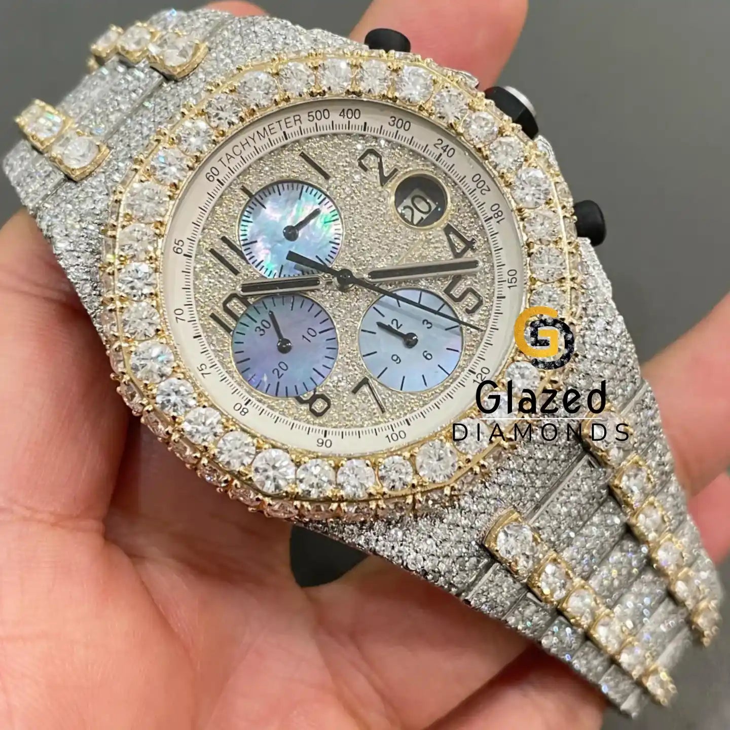 Purchase Luxury Chronograph Dial Iced Out Diamond Moissanite Watch