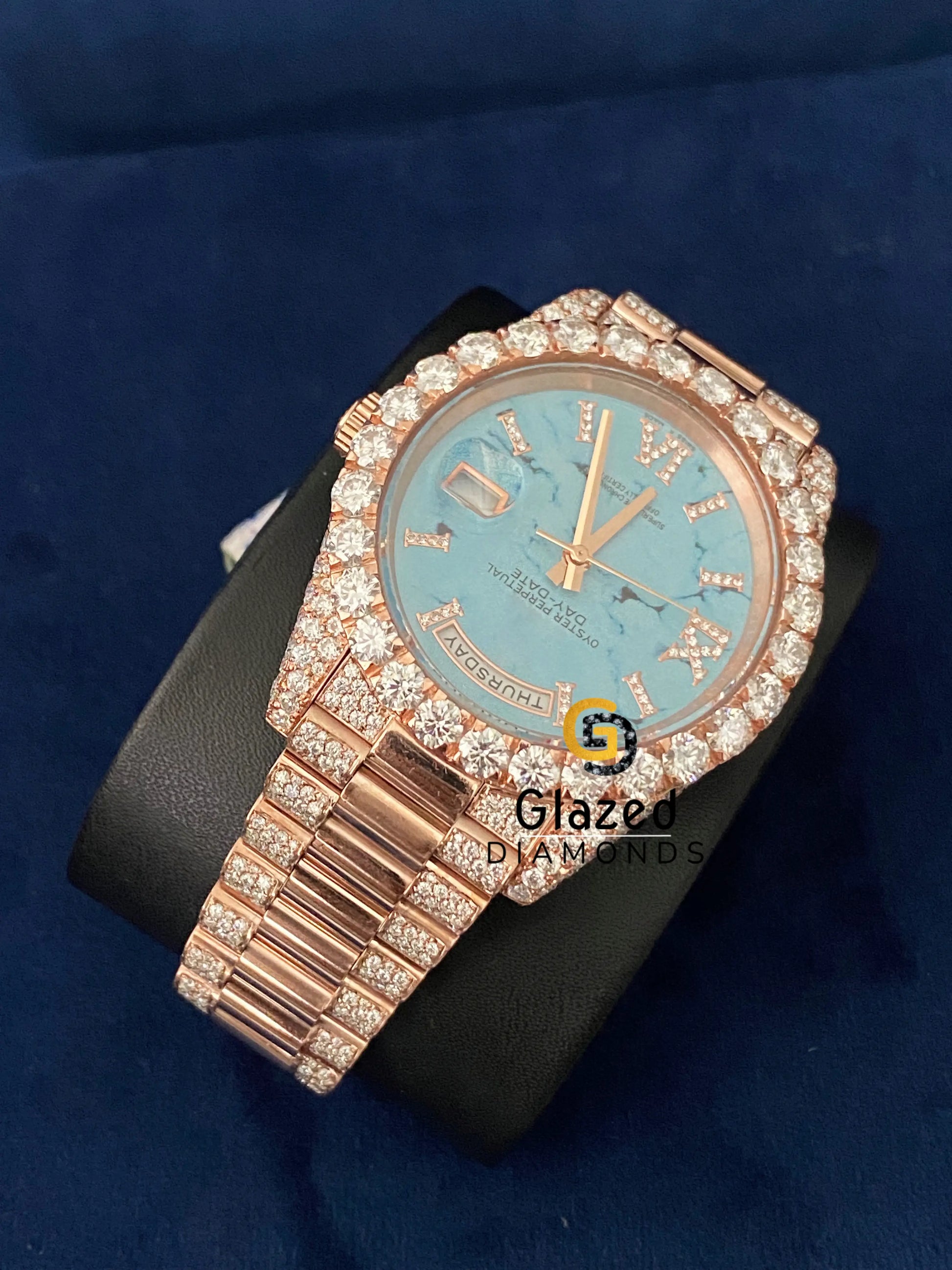 Turquoise Marble Dial Presidential Strap Day Date Moissanite Watch
